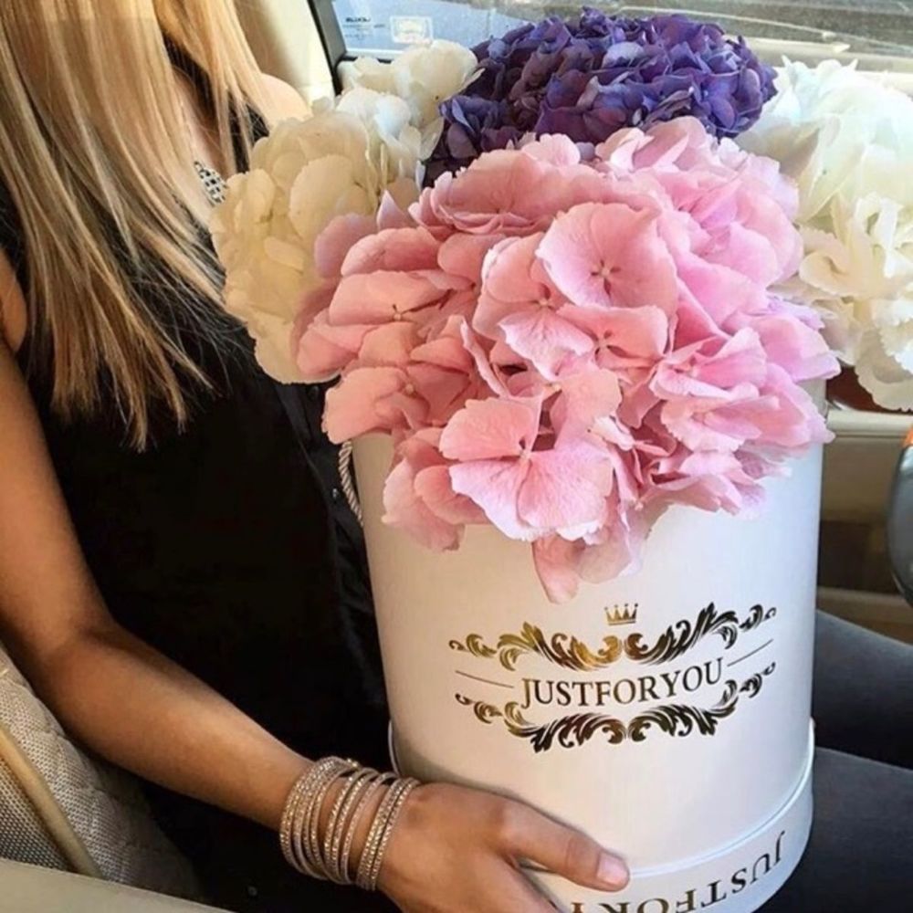 Королевские гортензии в шляпной коробке