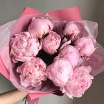 Лента – 2 шт.Пион Сара Бернар – 9 шт.Упаковка дизайнерская – 3 шт.Средство для продления жизни цветов – 2 шт.инструкция по уходу за цветами – 1 шт.
