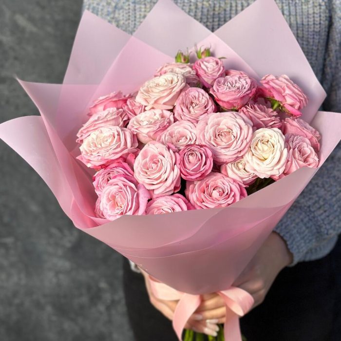 Лента атласная – 1 шт.Стильная упаковка – 1 шт.роза кустовая пионовидная леди бомбастик – 11 шт.