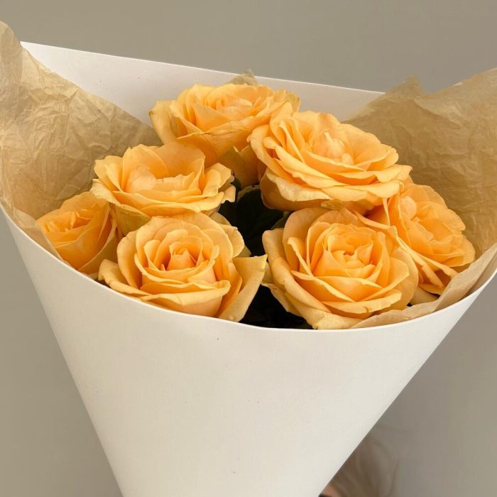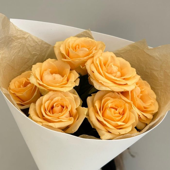 Букет из 7 персиковых роз в упаковке