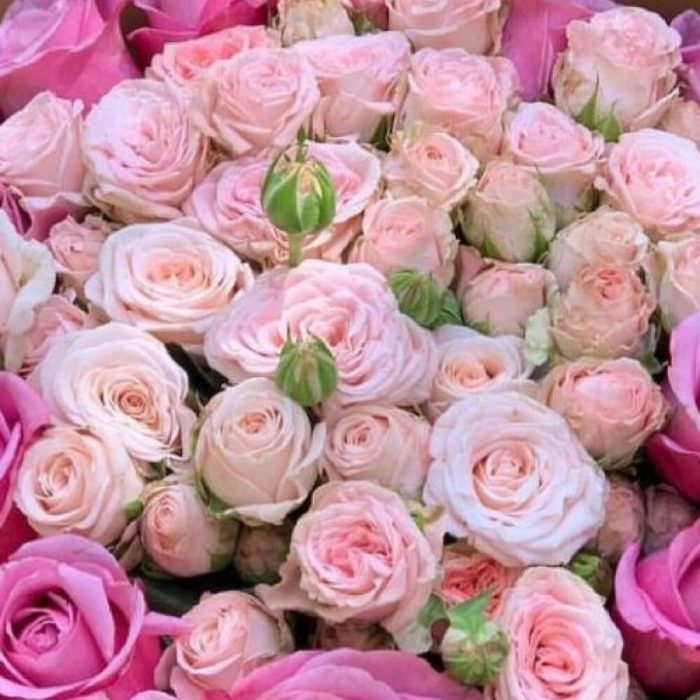 Одноголовая роза – 15 шт.Кустовая роза – 20 шт.Упаковка дизайнерская – 1 шт.Лента атласная – 2 шт.Открыточка с вашими пожеланиями – 1 шт.хорошее настроение – 100 шт.инструкция по уходу за цветами – 1 шт.коробка переноска – 1 шт.Кризал – 1 шт.