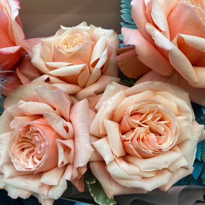 Роза – 5 шт.Лагурус – 5 шт.Папоротник – 2 шт.Лента – 2 шт.Упаковка дизайнерская – 2 шт.
