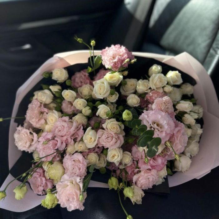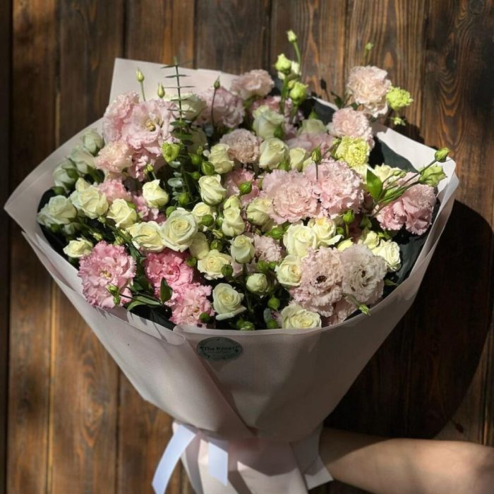 Альстромерии, Кустовые розы, Лизиантусы, Пионовидные розы, Розы, Ромашки