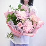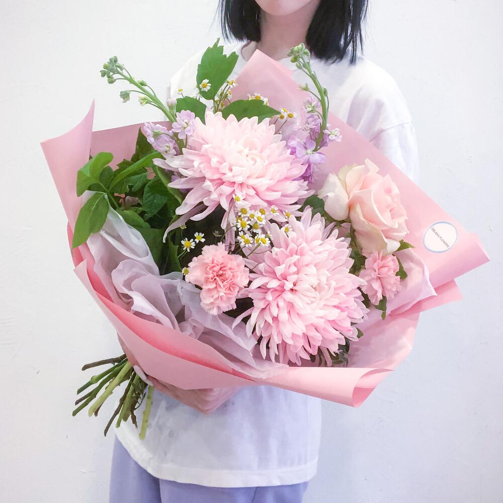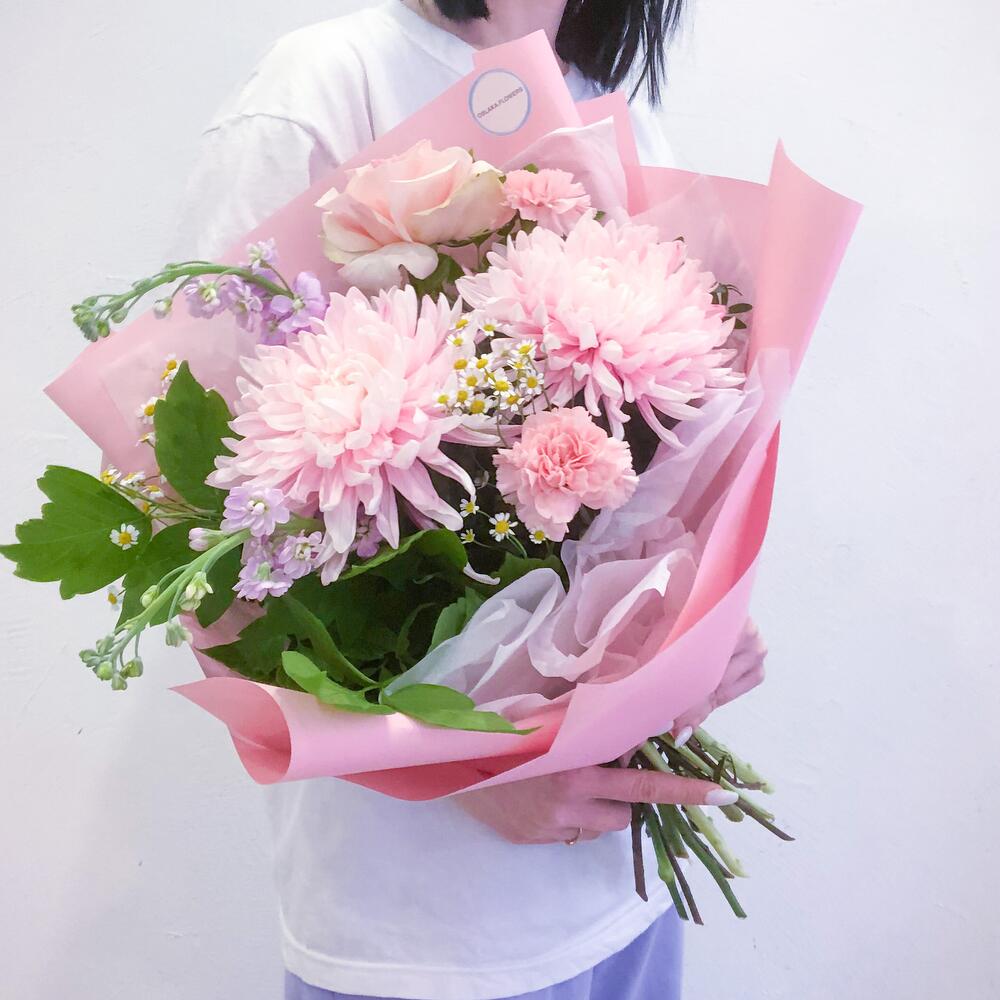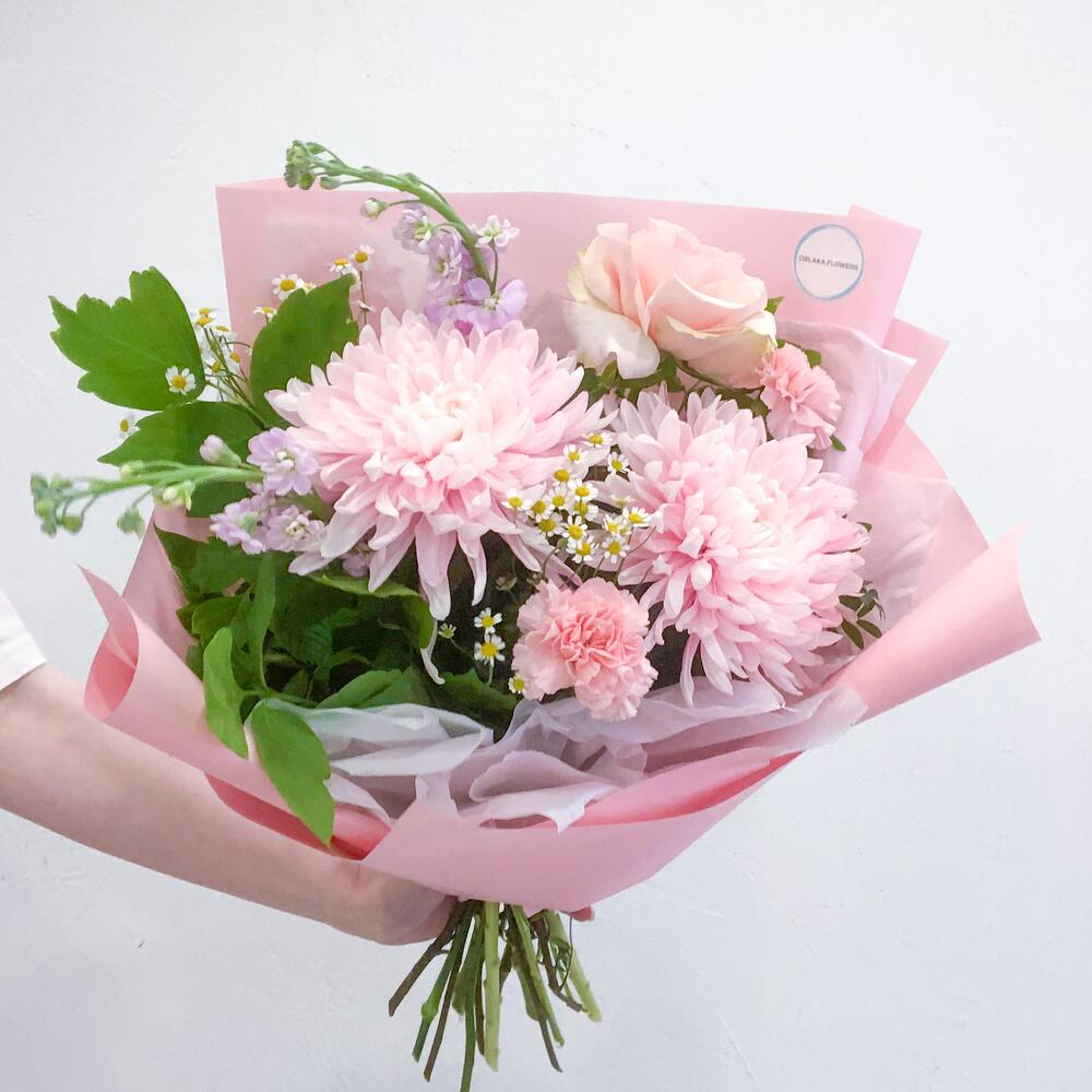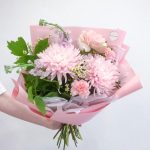 Нежно розовый букет с хризантемами