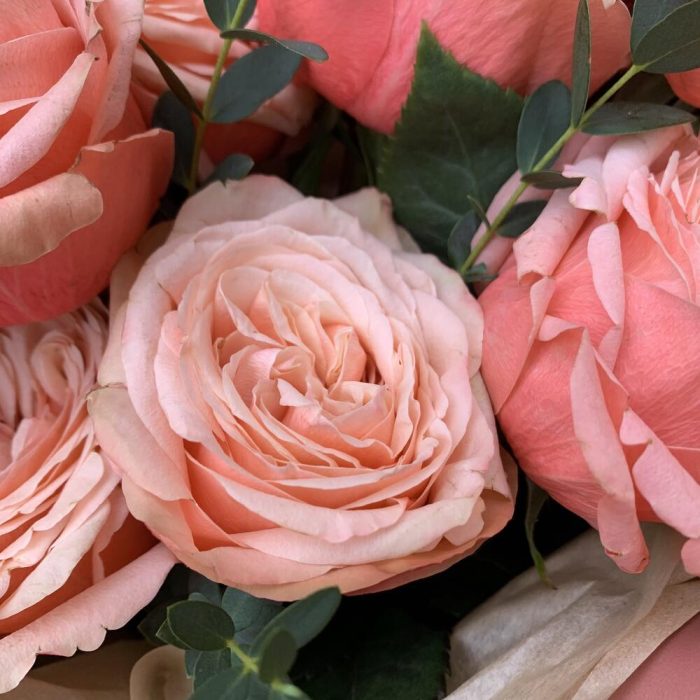 Альстромерии, Кустовые розы, Лизиантусы, Пионовидные розы, Розы, Ромашки