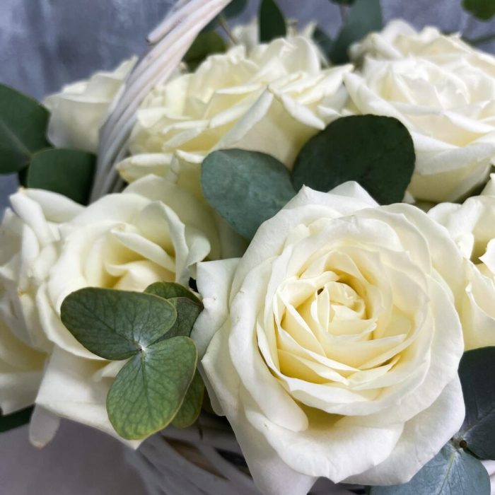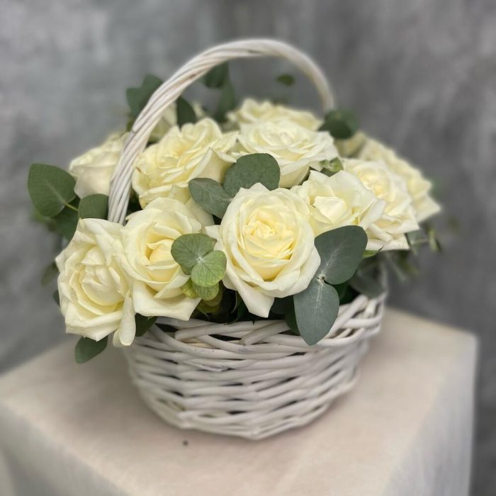 Корзина с белыми розами