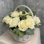 Корзина плетёная с белыми розами